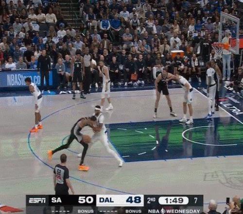 北京时间10月23日,马刺在赛季揭幕战中客场挑战独行侠。独行侠主帅贾森·基德摆出了一套超大首发阵容,2.06米的新秀状元弗拉格担任控卫,其余四个位置是1.98米的克雷·汤普森、2.01米的P.J.华盛顿、2.08米的浓眉以及号称已经长到2.18米的莱夫利。这套阵容令人担心进攻发起的问题,但没人会怀疑独行侠能拿出精英级别的防守,特别是对内线球员的围剿。而就是面对这样的长人阵,文班亚马如入无人之境,因为他的比赛内容早已超出所有人的想象。