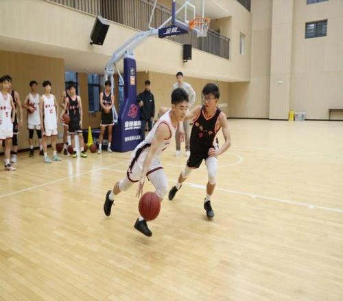当天,张劲松一行首先参观了学校宣传栏,并听取校史介绍,随后进入昌财体育馆观看校篮球队训练。球场内,身穿两色球衣的校队队员们正进行着绕障碍运球、上篮的训练,密集的击球声在场内回响。