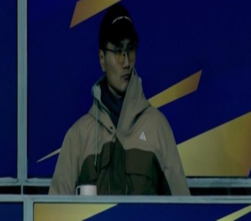中国男足新任主教练邵佳一到场观战足协杯决赛,考察球员。