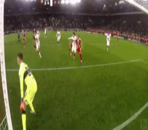 第80分钟,奥利塞突入禁区之后左脚劲射被阿西格农用手臂挡出,主裁判判罚点球并且向阿西格农出示红牌,凯恩主罚点球一蹴而就,完成了双响炮。
