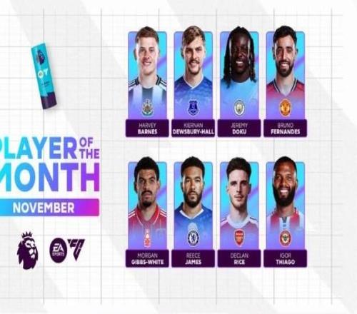 英超11月最佳球员候选:多库、B费、里斯詹姆斯、赖斯等在列 -