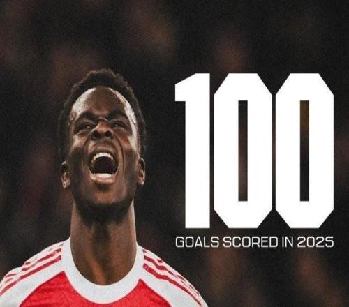 势如破竹,阿森纳2025年正式比赛攻入100球 -