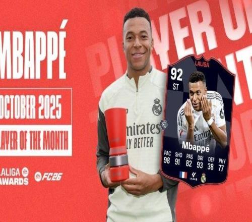官方:姆巴佩当选西甲10月最佳球员3场全胜且均有进球 -